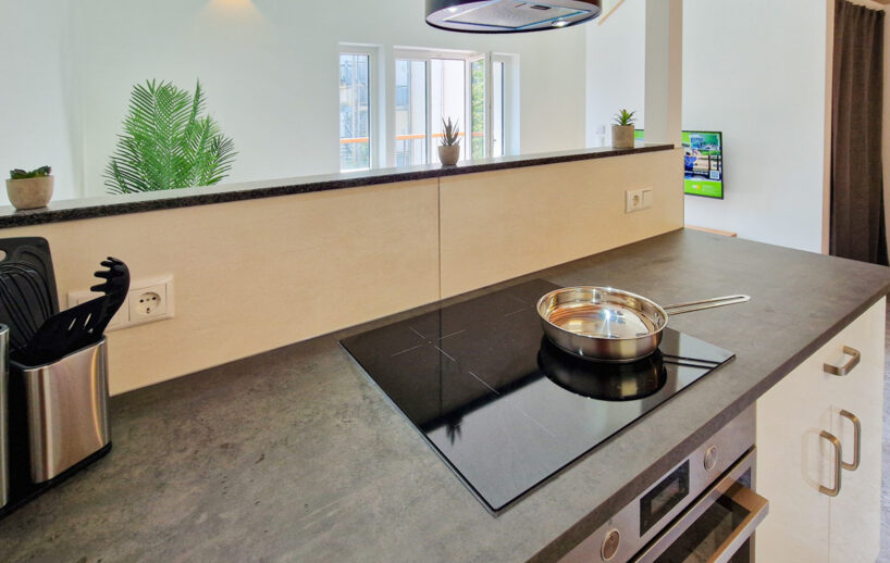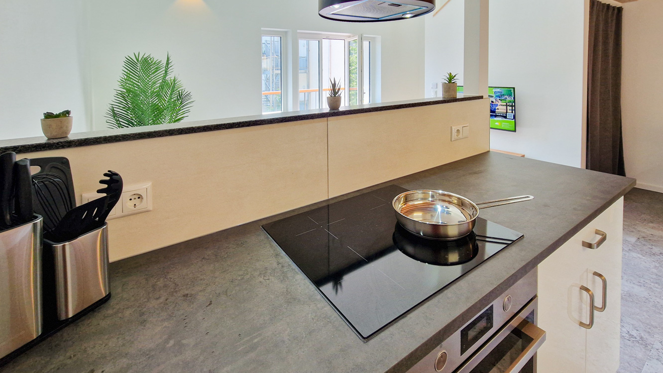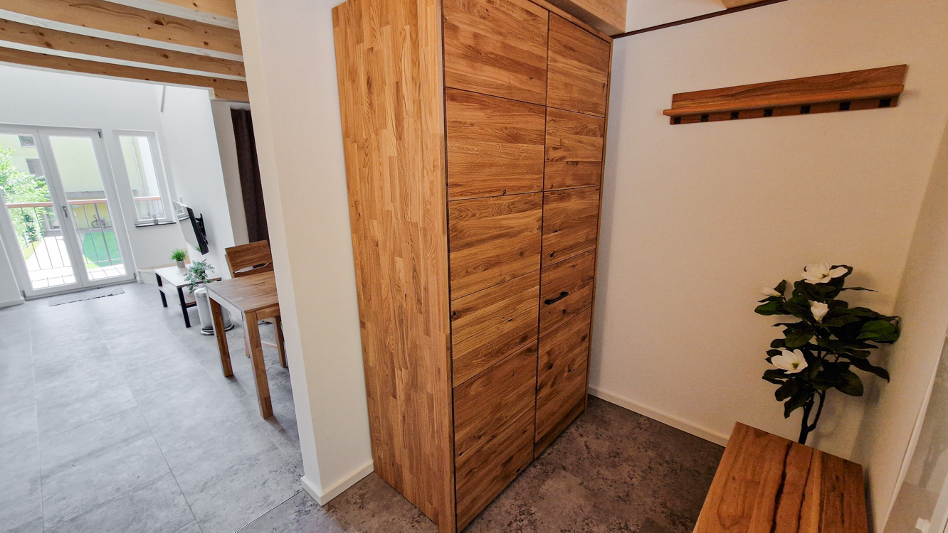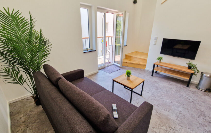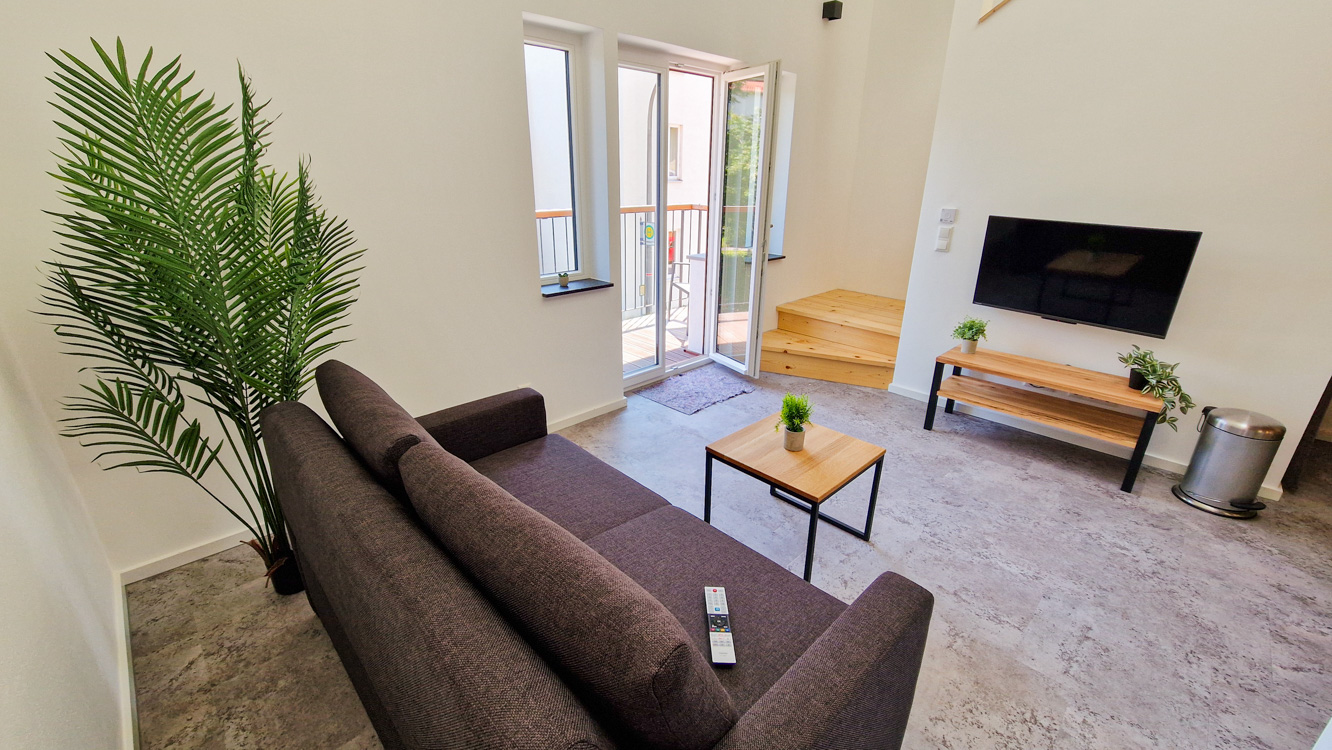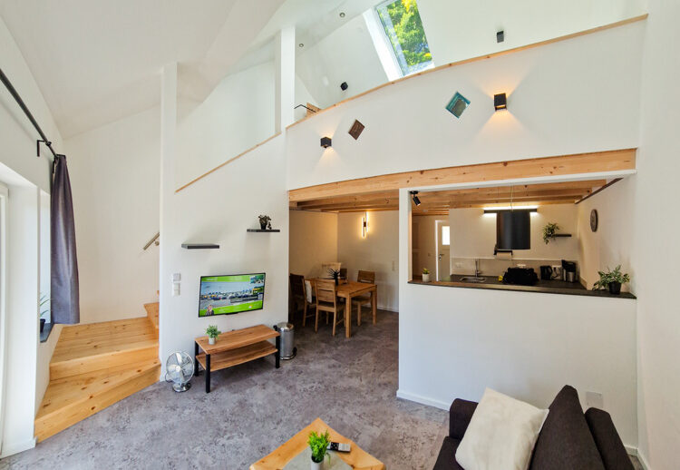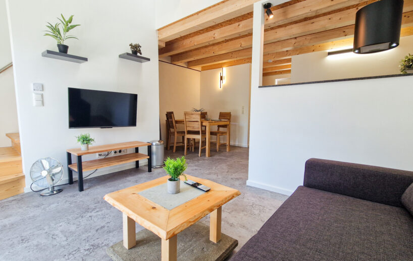 Das neu renovierte Business-Apartment in Trostberg bietet modernen Komfort gleichermaßen für kurze Geschäftsreisen wie auch für längere berufliche Aufenthalte. Ein großzügiger Wohn- und Essbereich schafft Platz zum Arbeiten und Entspannen, die voll ausgestattete Küche mit Backofen und Gefrierfach ermöglicht flexible Mahlzeiten ganz nach Ihren Wünschen. Das Schlafzimmer mit Doppelbett für zwei Personen, die geräumige Dusche sowie elektronisch steuerbare Dachfenster sorgen für Komfort, ergänzt durch Klimaanlage und Fußbodenheizung. Auf der ausziehbaren Couch können zusätzlich bis zu zwei Personen (z. B. Kinder) schlafen. Ideal für mobiles Arbeiten und Wohnen auf Zeit im Chiemgau.