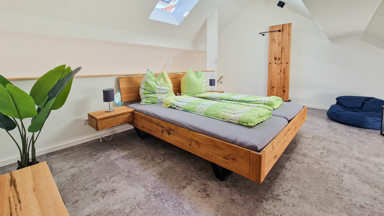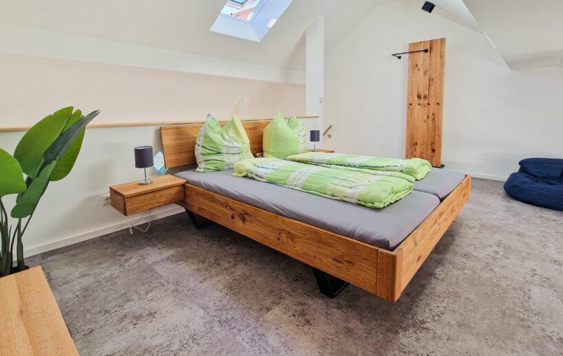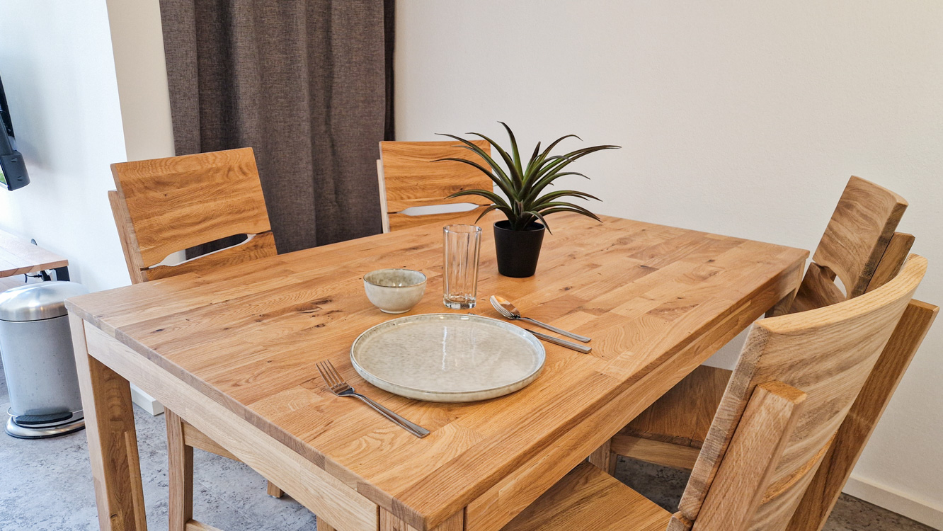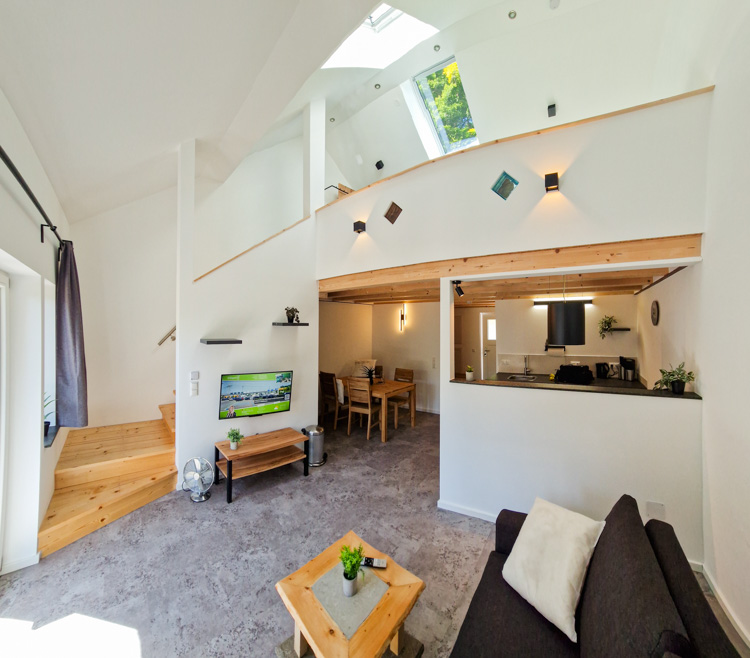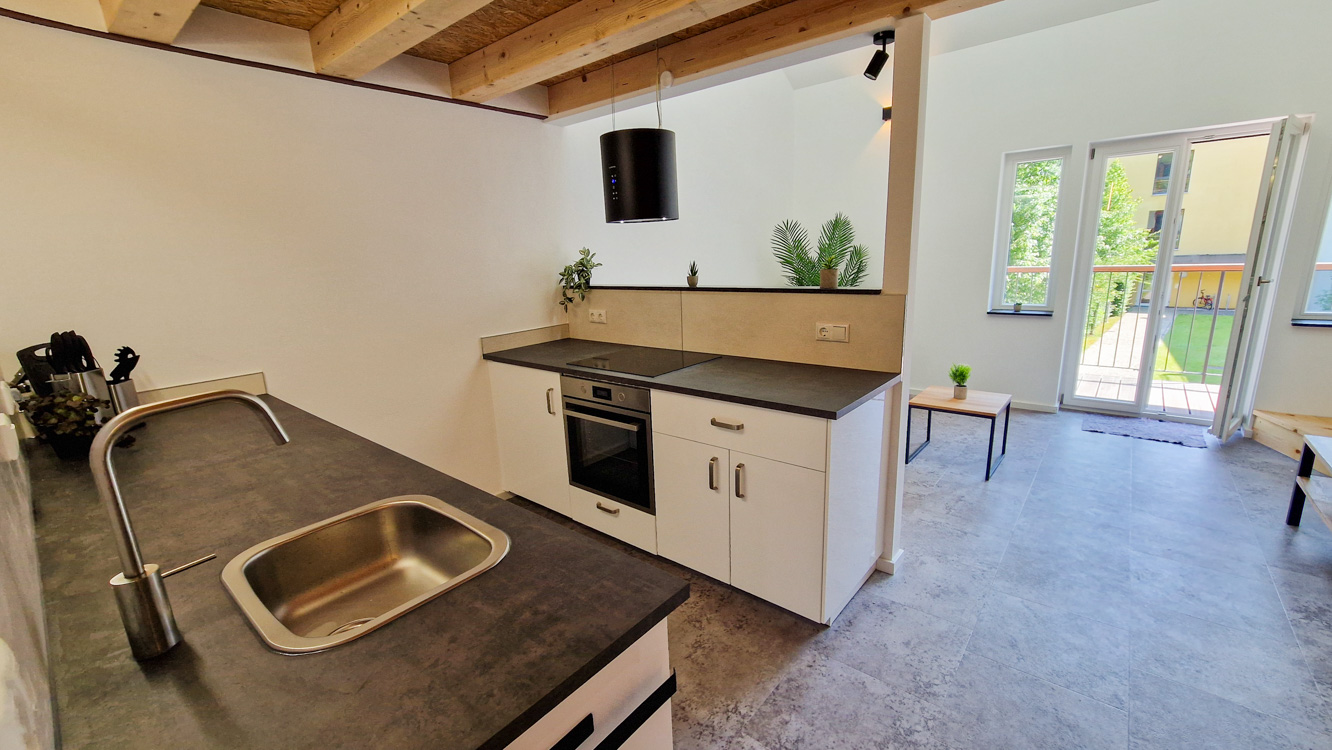 Das neu renovierte Business-Apartment in Trostberg bietet modernen Komfort gleichermaßen für kurze Geschäftsreisen wie auch für längere berufliche Aufenthalte. Ein großzügiger Wohn- und Essbereich schafft Platz zum Arbeiten und Entspannen, die voll ausgestattete Küche mit Backofen und Gefrierfach ermöglicht flexible Mahlzeiten ganz nach Ihren Wünschen. Das Schlafzimmer mit Doppelbett für zwei Personen, die geräumige Dusche sowie elektronisch steuerbare Dachfenster sorgen für Komfort, ergänzt durch eine Fußbodenheizung. Auf der ausziehbaren Couch können zusätzlich bis zu zwei Personen (z. B. Kinder) schlafen. Ideal für mobiles Arbeiten und Wohnen auf Zeit im Chiemgau.